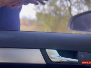 Pretty fit brunette comes to my car and helps me cum in public