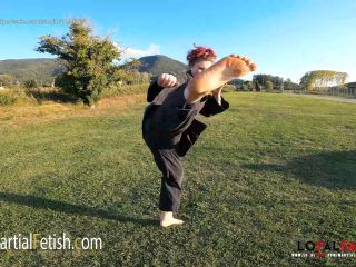 Martial Fetish - Alexis Luna black gi outdoor POV kicks ballbusting and foot domination