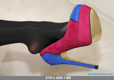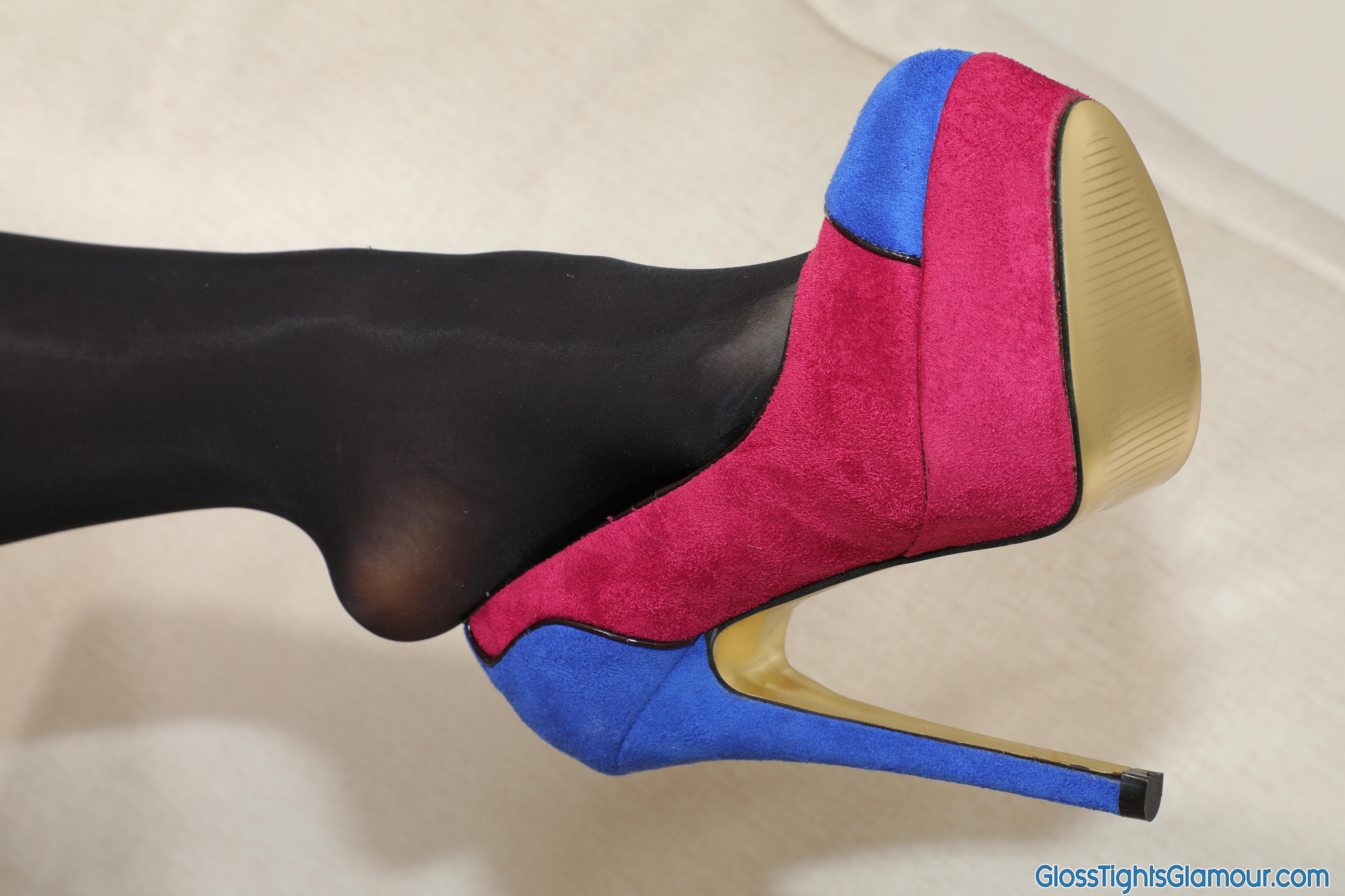 Suzi Star Purple satin dress with black glossy legwear Suzi Star ![]() 110 Photos Stills photoset from shoot with Suzi wearing a purple satin dress (sans bra), black glossy tights/pantyhose with purple briefs/panties underneath, and blue/red multi-coloured high-heeled platform suede court shoes, in a delicious tease to topless.