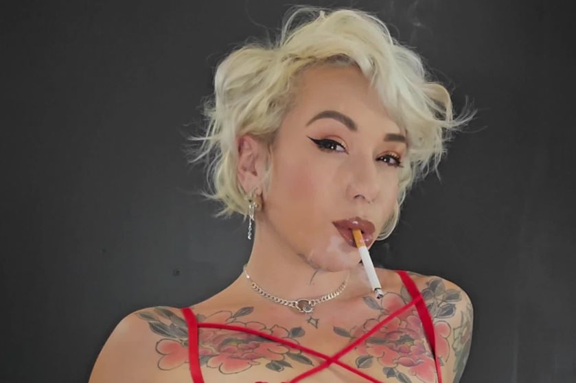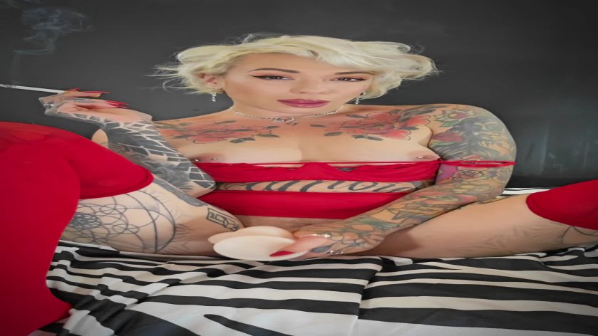 Smoking, sucking and seducing! Back with my new favourite video, how could it not be... i had SO much fun filming this naughty clip. Dressed in all Red with glossy Brown lips and short Blonde hair im here and ready to leave you addicted, making sure you'll have this saucy video on repeat all night long. Chainsmoking THREE Marlboro Red 100s as i tease myself for you, touching myself all over making sure to pay attention to my nipple and pussy piercings. Each drag turning me on by the second i cant help but spend some time sucking my dildo as if it were your big dick in my hands and mouth. Lots of smoke, spit and sexy moments for you to enjoy here!