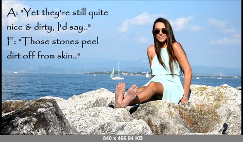 ![]() ![]() ![]() ![]() ![]() Stars: AMELIE Wonderful AMELIE enjoys the sun and the breeze along the shore of Garda Lake in Desenzano (Italy) on a beautiful early September day. AMELIE takes off her jacket to reveal a sexy white top, enjoys the vista on the lake, struts her shapely legs and her fantastic size 38EU/7.5US bare feet, and takes some pictures with her smartphone. You can hear AMELIE chatting with The Feetosopher (in Italian with English subtitles) about the quality of the pictures she has taken.. she is not very satisfied with it, but she trusts that The Feetosopher will take better ones.. 1080x600 (16:9 widescreen HD), bit rate 8Mbps, 30 frames per second! Duration 3 min.20190512045619_16605 Barefoot Urban Girls.wmv - 170.1 MB